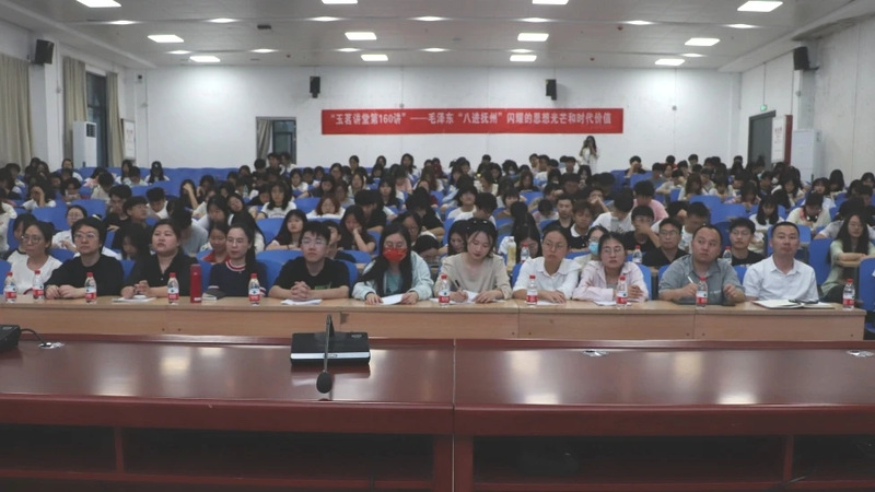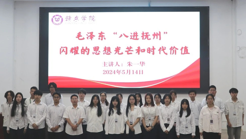 为深入学习贯彻习近平新时代中国特色社会主义思想,进一步了解毛泽东光荣、伟大的革命事迹,传承红色基因,厚植爱国主义情怀,培养担当民族复兴大任的时代新人。2024年5月14日晚,由校团委主办、williamhill中文团总支承办的“玉茗讲堂”系列活动第160讲于羊城校区阶一教室如期举办。中共抚州市委党校党史党建教研室主任、江西省中国特色社会主义理论体系研究中心特约研究员、江西省党校行政学院系统师资与教学专题库首批成员、市委二十大精神宣讲团成员朱一华副教授受邀为我校近300余名师生带来《毛泽东“八进抚州”闪耀的思想光芒和时代价值》专题讲座。校团委副书记(主持工作)王子惠、williamhill中文全体辅导员和班主任以及教师代表,williamhill中文党总支负责人储瑶主持。