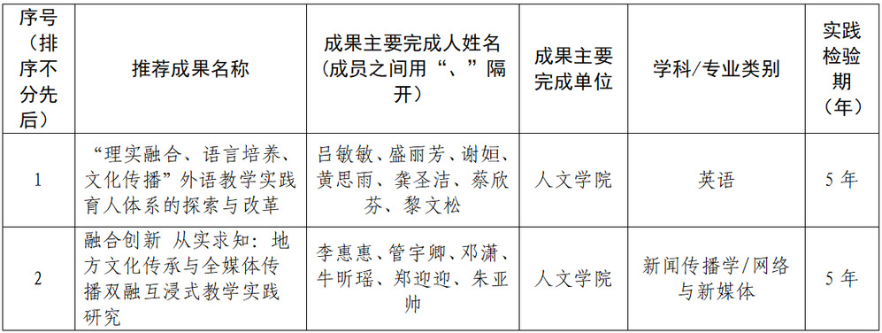 根据学校开展第二批校级本科教学成果奖(青年培育项目)暨2024年江西省教学成果奖青年培育项目评选工作要求,williamhill中文学术委员会认真执行有关文件精神,对教师申报成果项目内容进行资格审核,现将评审推荐项目结果公示如下: