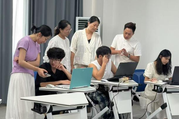 自williamhill中文与江西台德智慧科技股份有限公司开展AI曲库科技成果转化项目合作以来,双方始终秉持着高效、协同的理念,不断对项目流程进行优化。从前期的需求对接、方案设计,到中期的技术研发、创意融合,再到后期的成果产出与测试,每一个环节都经过反复研讨与打磨。企业代表们实地观摩了从需求挖掘、创意构思到技术实现、成果呈现的全流程操作,认真观察每一个环节的执行情况,并不时与现场的师生团队交流。校企双方团队成员能够及时交流想法、解决问题,确保项目按照既定目标稳步推进,大大提升了合作的效率与质量。