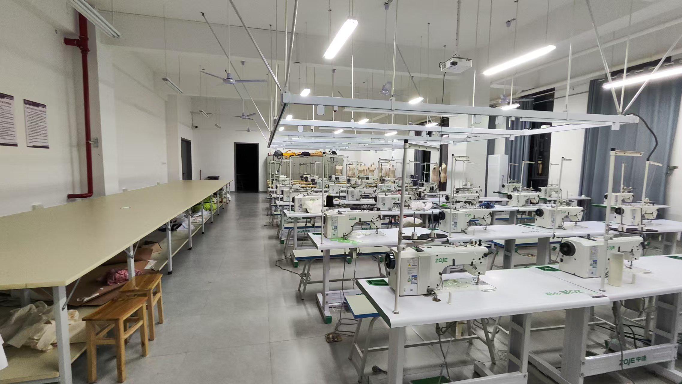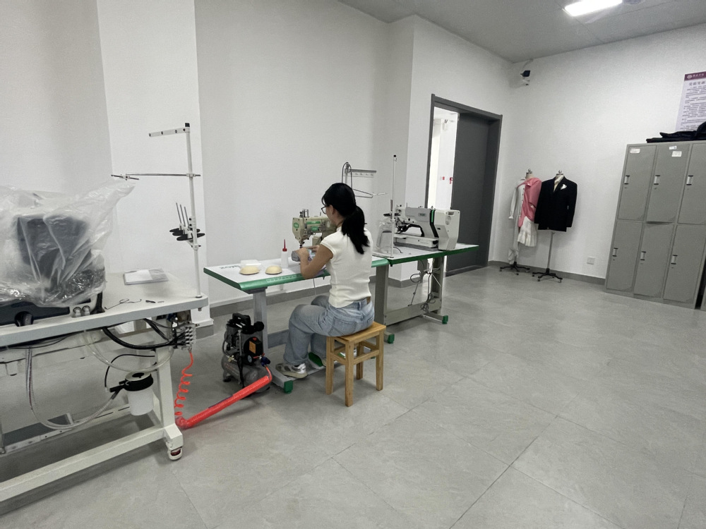 服装工艺设计实训室聚焦服装缝制工艺教学,配备高速平缝机、包缝机、锁眼机等专业设备,及蒸汽熨斗、压衬机等辅助工具。实训区域按生产流程划分裁剪区、缝制区、整烫区,可开展基础缝制、成衣工艺、特种工艺等实训项目。学生通过从面料处理到成衣完成的全流程实操,熟练掌握不同面料的缝制技巧、工艺标准及质量控制方法,提升服装工艺实操能力与创新应用水平。