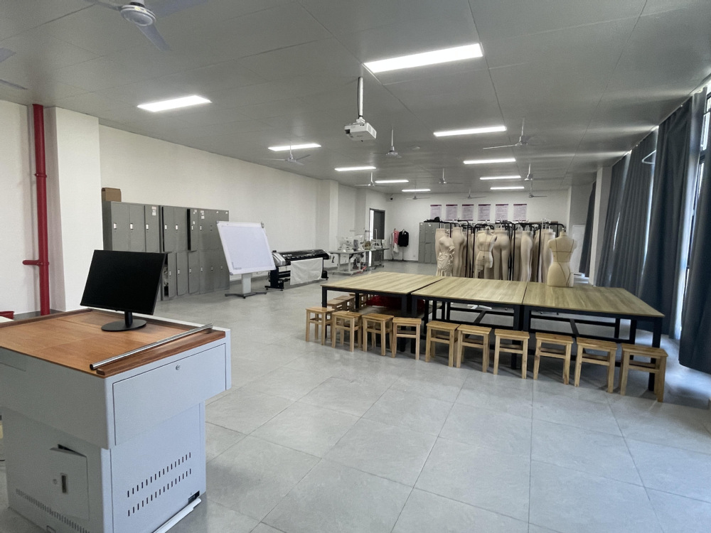 服装结构设计实训室是服装专业核心实训场所,配备全套服装制板工具、人体模型及 CAD打版系统。室内划分制板区、推板区和样衣试穿区,可满足服装结构原理、纸样设计、版型优化等课程实训需求。学生通过手工制板与数字化技术结合的实操,掌握服装结构平衡、版型修正等核心技能,为后续工艺制作和设计落地奠定基础。