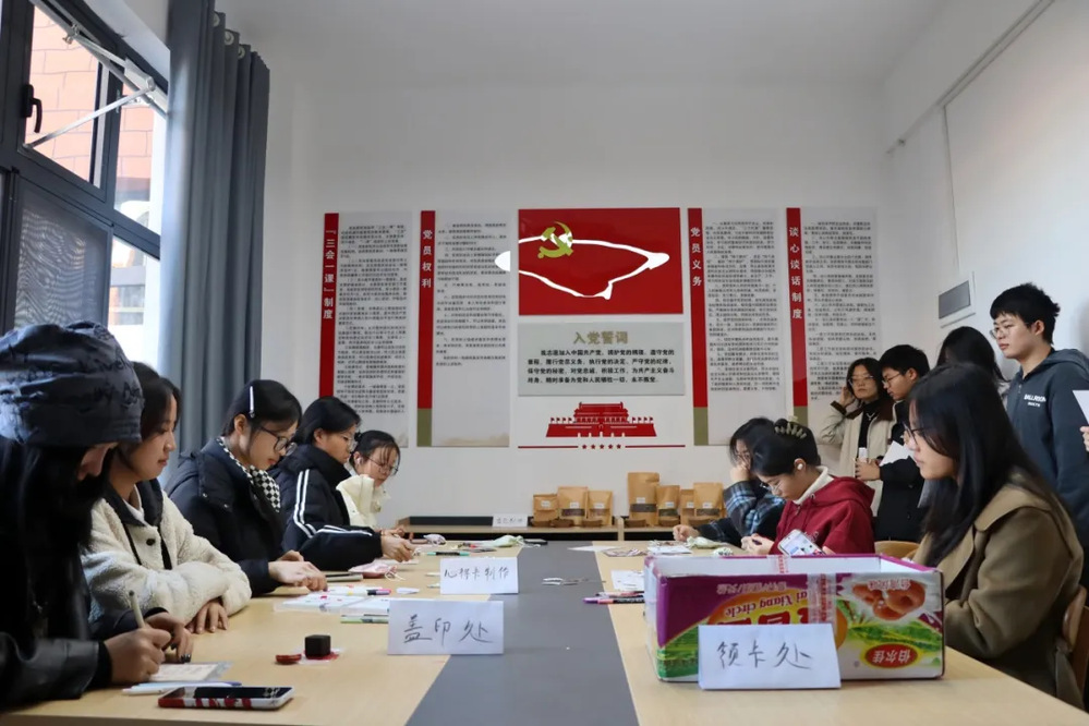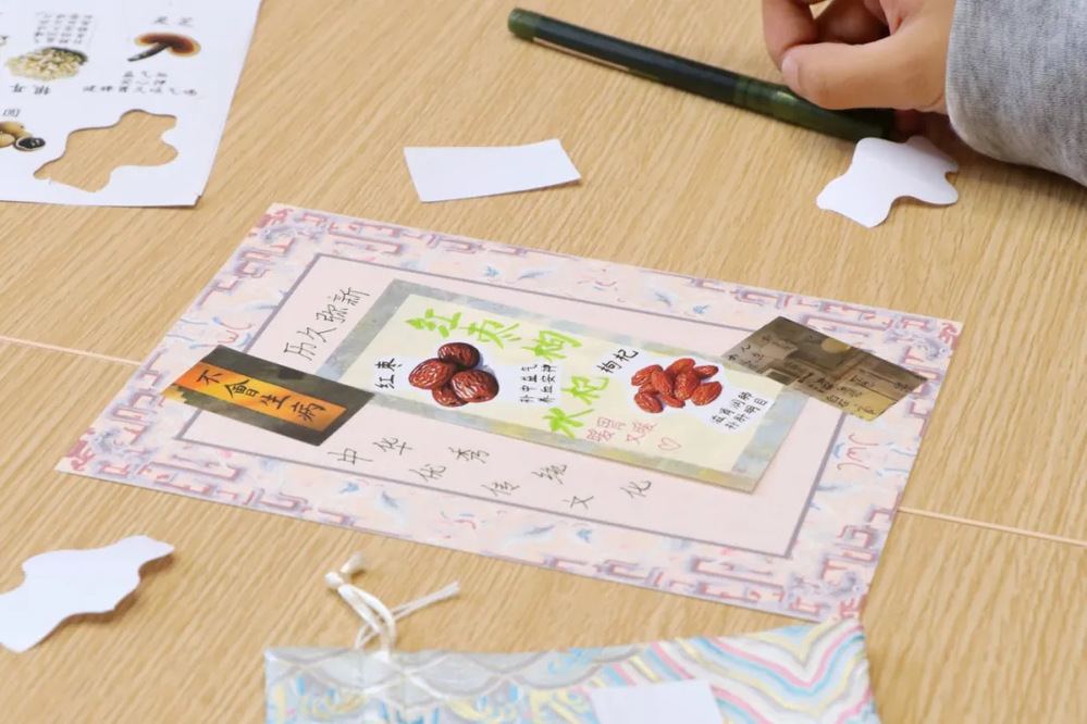 活动过程中,在“‘治未病’心得卡”创作区,同学们用马克笔将感悟文字书写在卡片正面,用贴纸点缀卡片空白处,手绘小图标,打造立体装饰效果,一张张精美的卡片完成了。