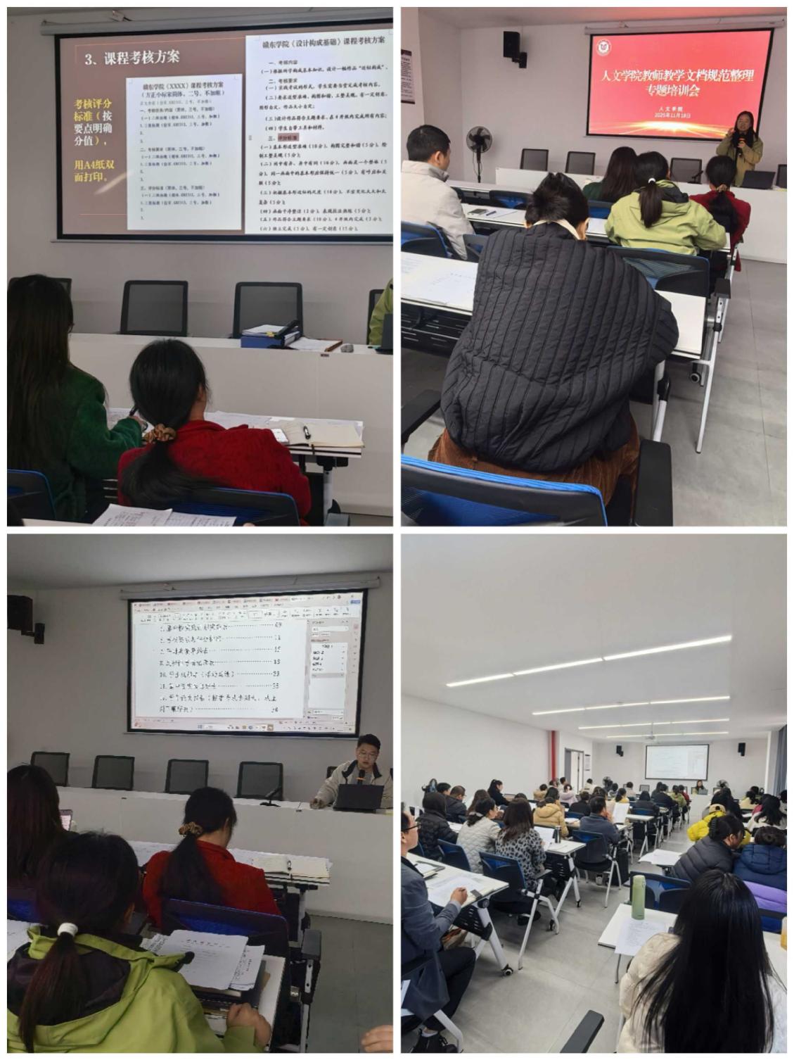 培训环节中,谢姮、张玉升、黄浩等教师先后发言,分别结合合格评估对教学档案的具体要求,就考试材料、考核材料等不同结课形式的材料归档范围、整理标准、装订规范等进行系统细致解读,进一步明确了评估导向下的教学文档规范,统一了思想认识。