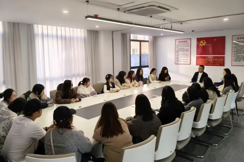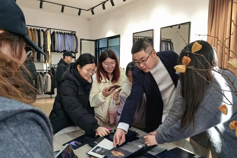 实地探访结束后,我院师生与鲍斯高企业副总衣新举行了专题座谈会。座谈会上,衣新副总首先对我院师生的到访表示欢迎,并结合企业发展历程,分享了服装行业的发展现状、市场需求及未来趋势。他指出,当前服装行业正朝着个性化、智能化、品牌化方向转型,既需要掌握扎实专业技能的技术型人才,也需要具备创新思维和市场洞察力的复合型人才。