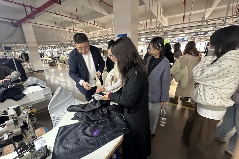 此次走访活动让学生们收获颇丰,之前在课堂上学习的服装制作流程都是理论知识,今天亲眼见证一件衣服从面料变成成品的全过程,尤其是企业师傅们严谨细致的工匠精神,学生们深受触动。男装设计课程通过赴企业进行实践教学,推进产教融合课程的建设。未来,我院将继续加强与各类优质企业的合作,搭建更多实践教学平台,让学生走出课堂、走进企业,在实践中增长才干,为服装行业输送更多高素质专业人才,助力行业高质量发展。