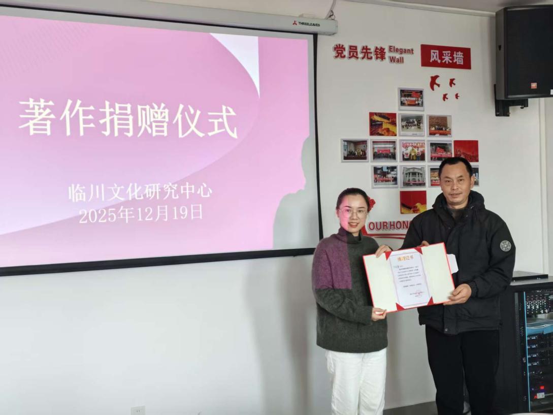 随后,程娟为四位捐赠者颁发了捐赠证书。她代表中心向四位学者的慷慨捐赠致以最诚挚的谢意,高度评价了捐赠著作对于丰富临川文化研究文献资源、拓宽研究视野、深化研究内涵的重要意义。她表示,研究中心将妥善保管、充分利用好这批珍贵著作,让其在学术研究与文化传播中发挥最大价值。