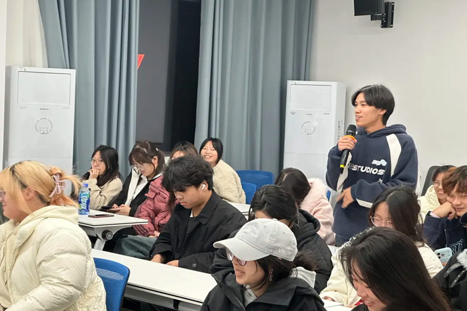 互动交流环节,现场气氛热烈高涨。学生们围绕“服装行业不同岗位的能力要求”“服装与服饰设计专业就业”等问题积极提问,谢校友结合自身经历逐一解答,给出具体可落地的建议。