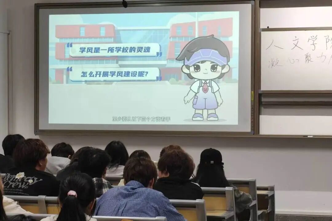 视频学习环节结束后,邓婉欣同学进行了专题PPT的讲解,围绕学校迎评促建的工作要求,深入解读了优良学风建设对青年成长成才的重要意义,详细阐释了学校合格评估工作的目标、举措与学生行动指南。号召全体同学践行“勤学、博学、乐学、笃学”的优良学风,端正学习态度、规范学习行为、提升学习效能。讲解过程中,同学们认真聆听、记录要点,现场学习氛围浓厚。