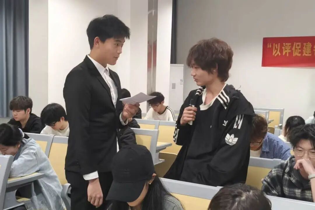 问答互动环节,主持人结合PPT讲解内容与合格评估知识要点,抛出相关问题。现场同学积极举手、踊跃作答,在一问一答中深化了对合格评估工作的理解,进一步巩固了学习成果。同学们围绕“如何以实际行动助力迎评促建”分享想法,纷纷表示将严守课堂纪律、规范言行举止,主动配合合格评估考察各项工作,展现赣东学子良好精神风貌。